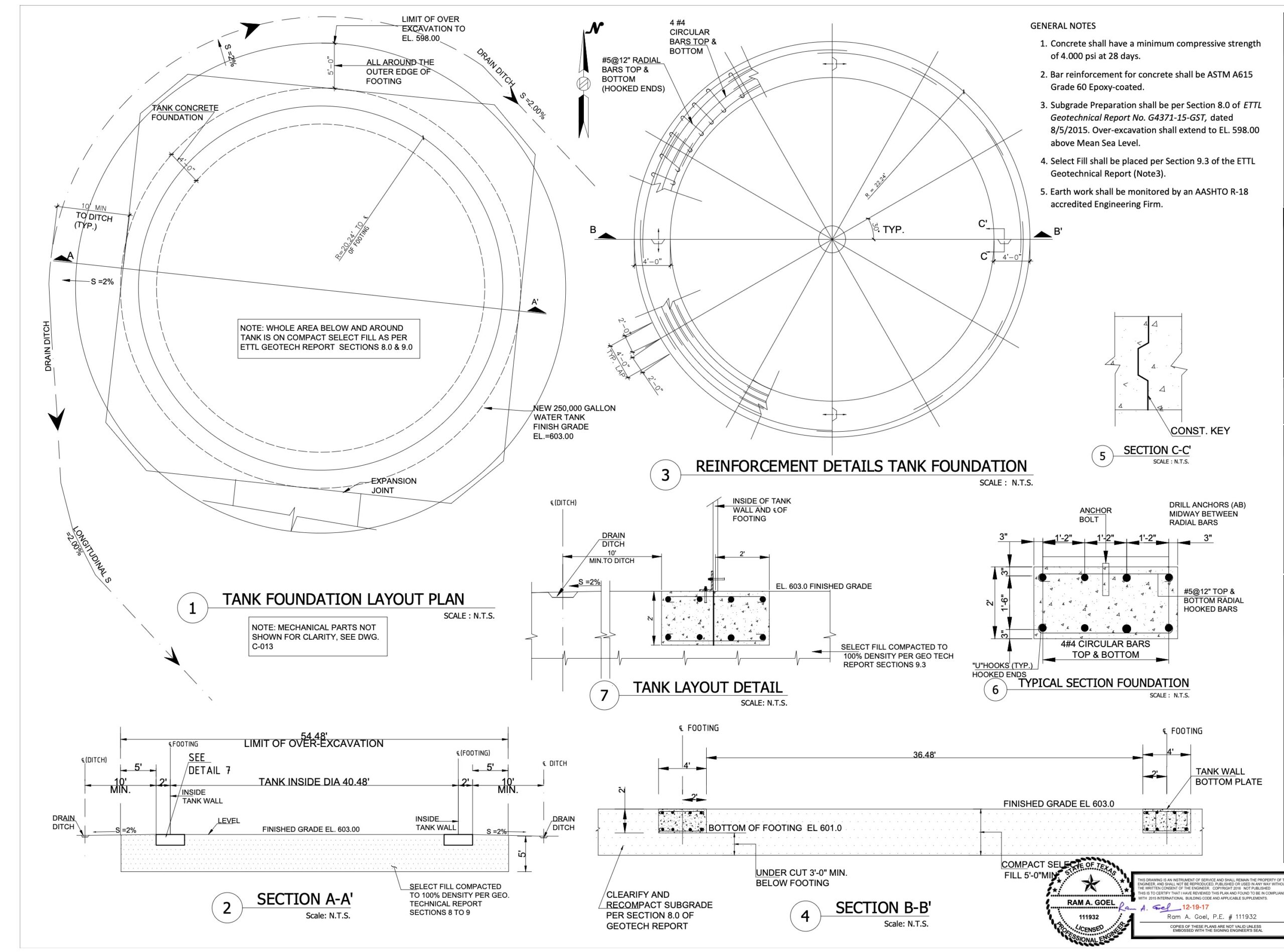 • Graded to slope away from the tank to prevent water from pooling against wall panels during heavy rainfall