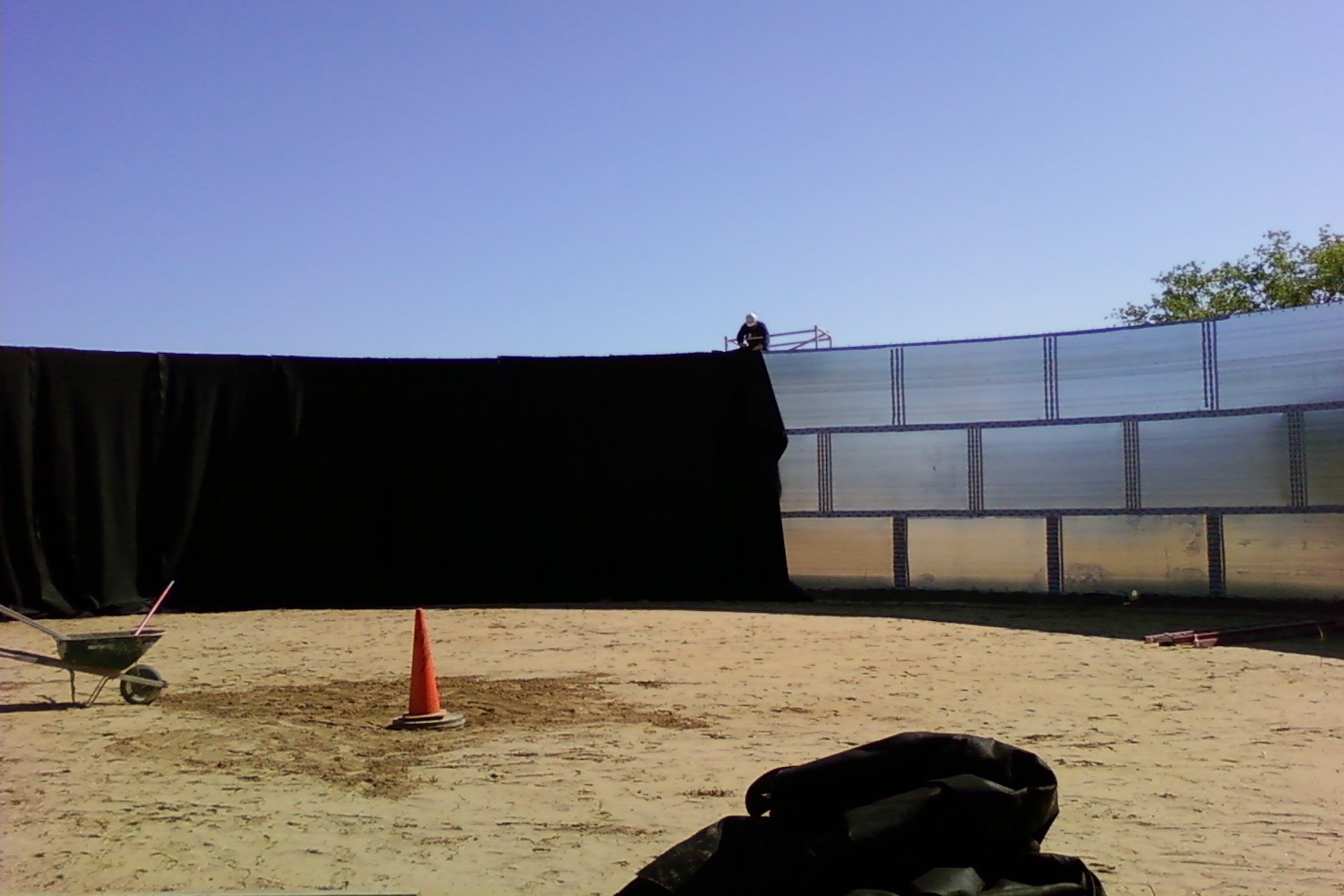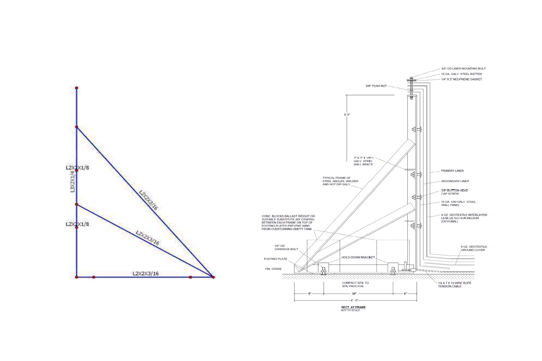When tanks are installed in a free-standing configuration, meaning they are not mechanically anchored to the ground, ballast weights are placed on the various “footing plates” our tanks are shipped with, to resist wind and potential seismic forces. Minor out-of-plumb conditions in frames or wall panels do not pose a structural concern, as again, these are not welded tanks. These tanks are intentionally designed to accommodate imperfect site conditions through inherent flexibility and the internal network of tension cables located beneath the liner(s).